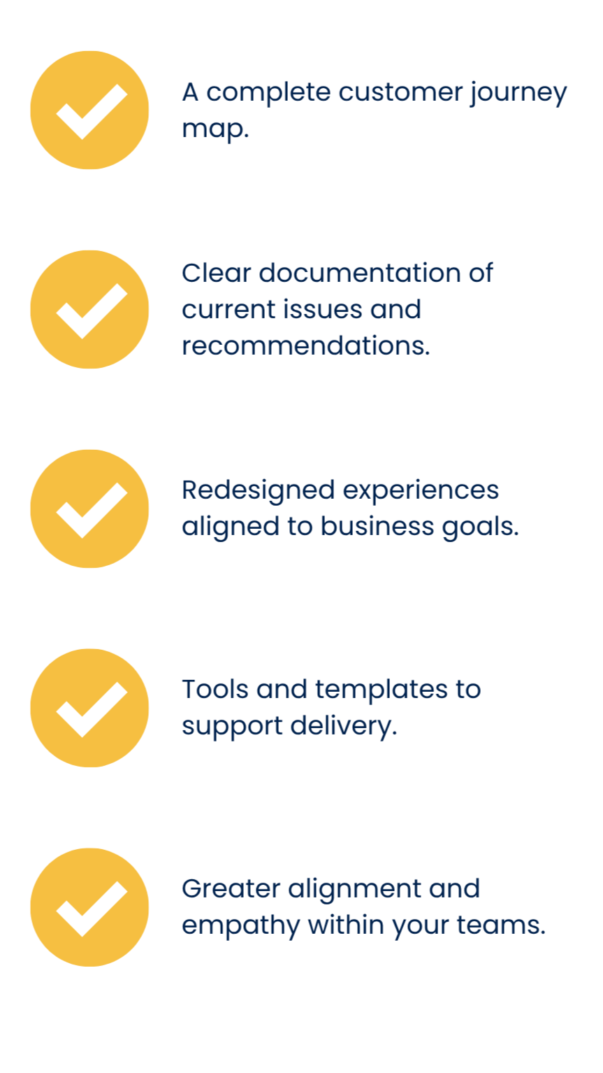 Workshops with your team to map out what your customers experience today, from start to finish.